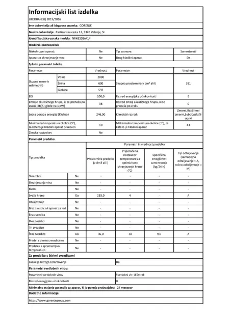 GORENJE NRK6202AXL4 hladilnik z zamrzovalnikom