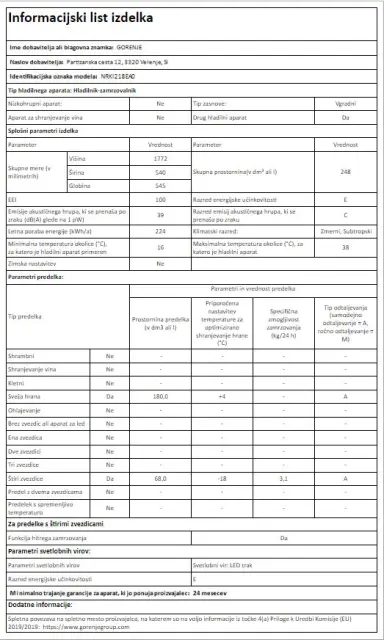 GORENJE NRKI218EA0 vgradni hladilnik