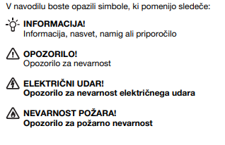 Slike o varnosti izdelka vsebujejo opozorila na embalaži izdelka in lahko vključujejo ključne varnostne informacije, povezane z določenim izdelkom.