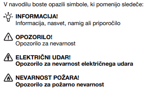 Slike o varnosti izdelka vsebujejo opozorila na embalaži izdelka in lahko vključujejo ključne varnostne informacije, povezane z določenim izdelkom.