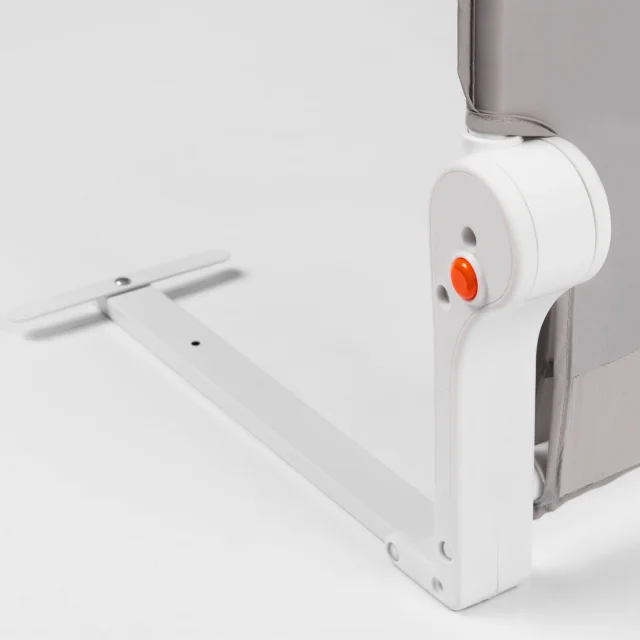 Ensure your child's safety during sleep with the Nukido Bed Safety Guard, designed to prevent falls from bed. This sturdy guard features a lightweight yet durable steel frame, ensuring long-lasting protection. With a breathable mesh design, you can easily keep an eye on your sleeping child. The guard includes a practical storage pocket for toys or pacifiers and is equipped with a locking system that prevents accidental folding. Quick and easy to assemble, the Nukido Bed Safety Guard is adjustable up to 180 degrees for convenience. Compliant with European safety standards.