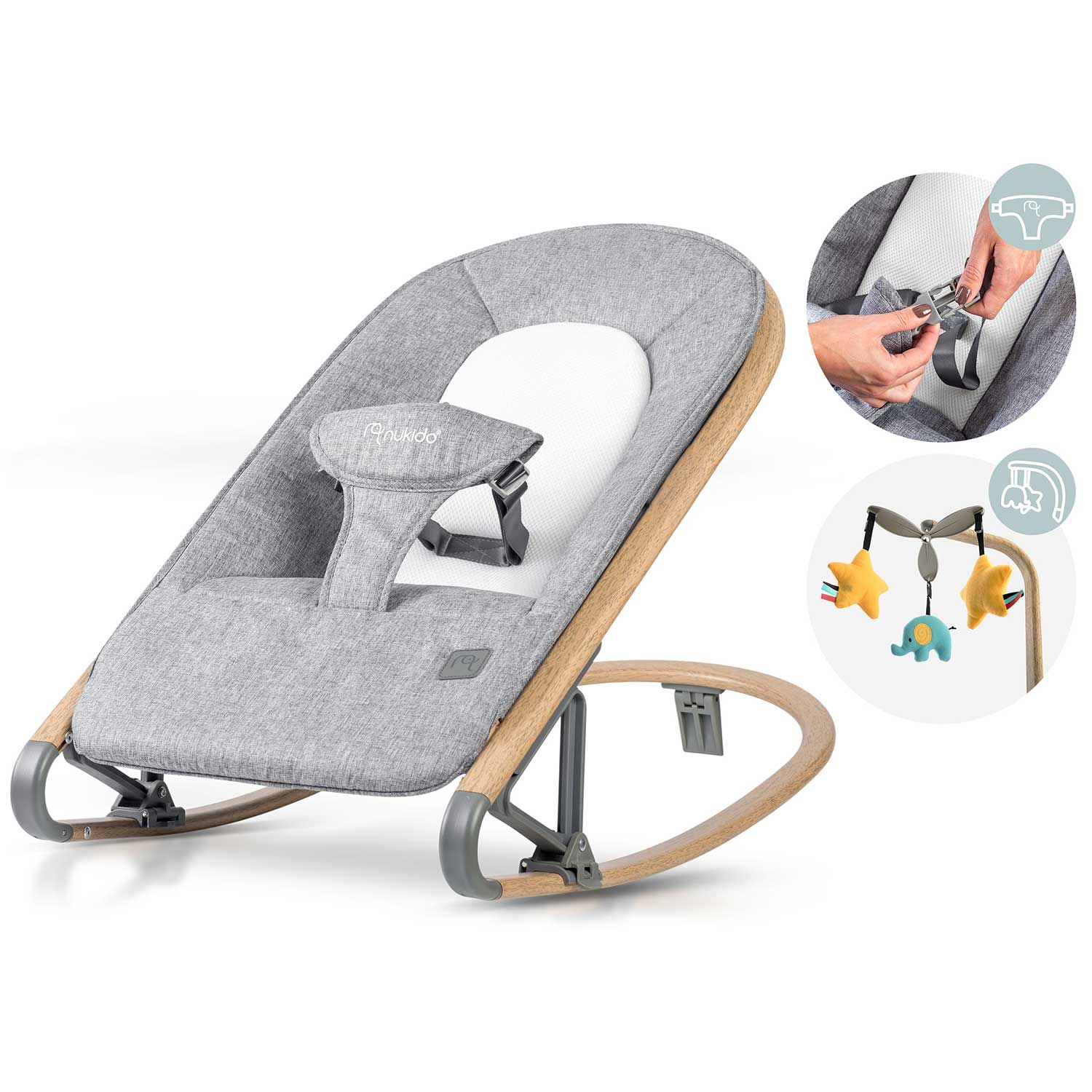 Nukido Gray Rocking Chair with Toys - 2-in-1 Bouncer for Infants