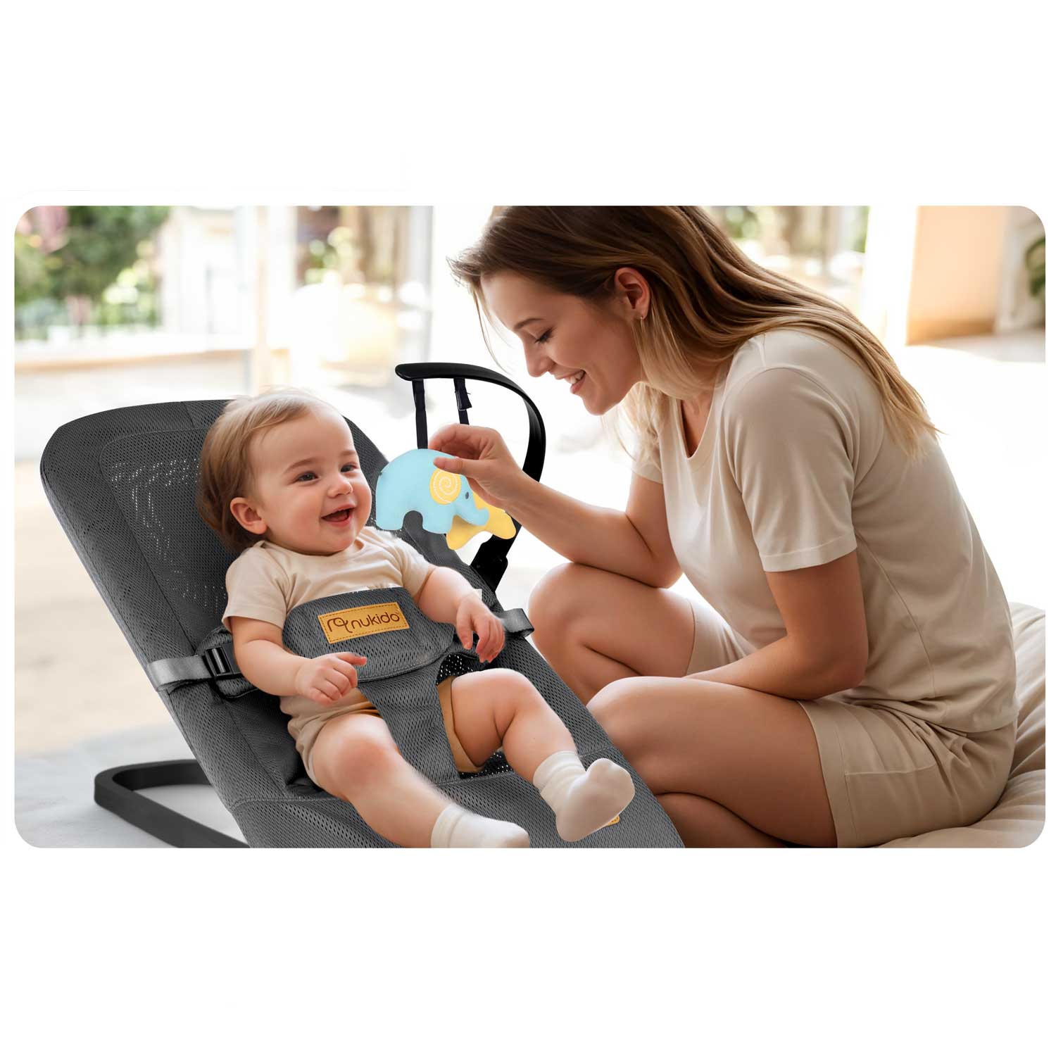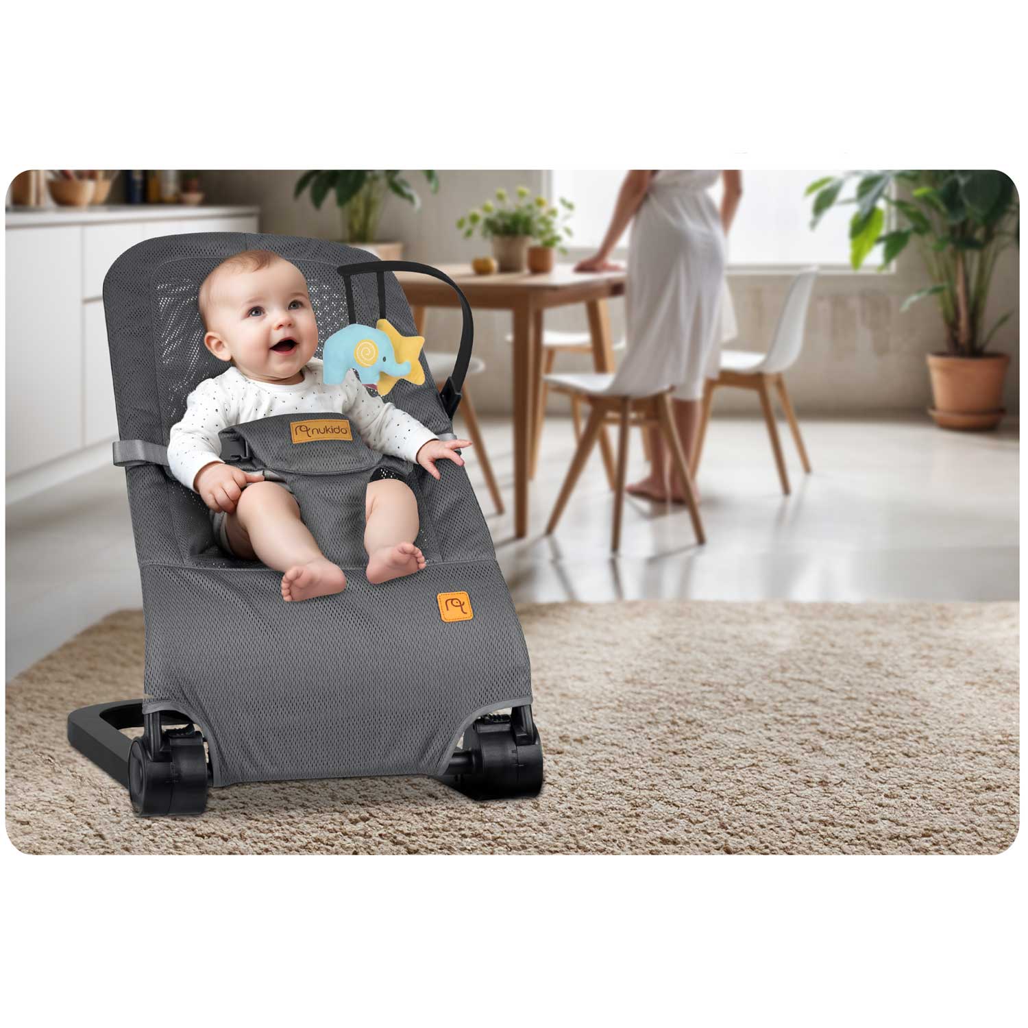 Nukido Gray Rocking Chair with Removable Toy Bar for Active Play