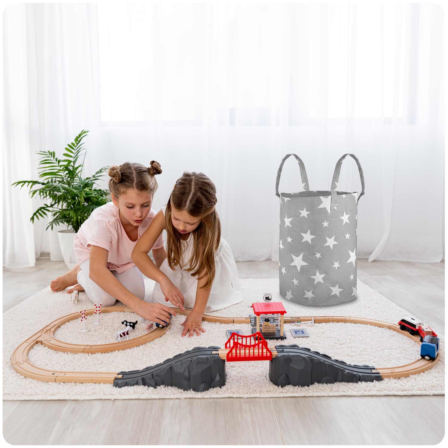 Nukido Gray Star Toy Basket - Stylish Storage Solution for Kids