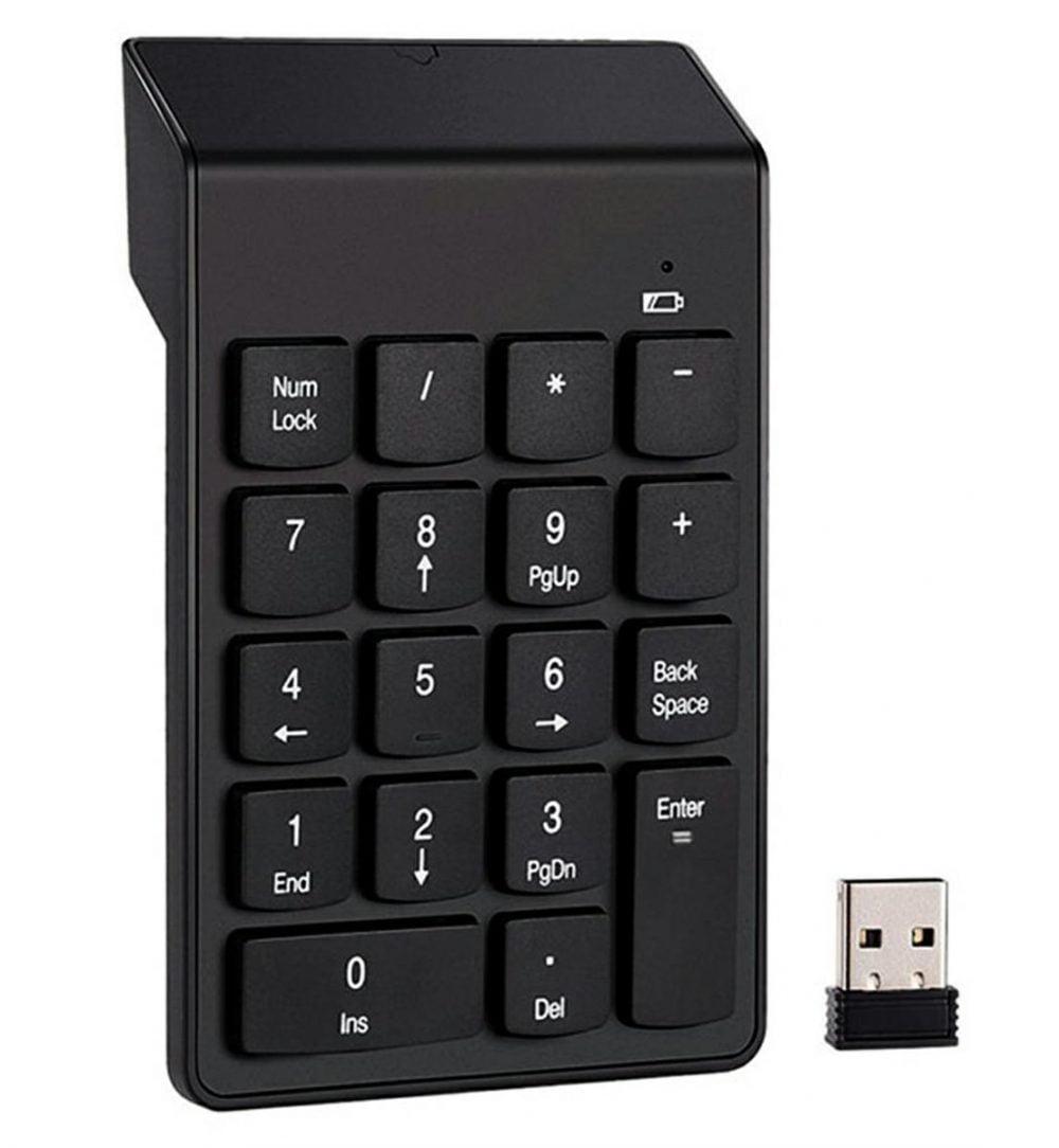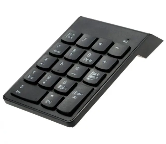 Brezžična USB številčna tipkovnica. Odlično dopolnilo nepopolnim tipkovnicam za tablice in prenosnike z dodatno numerično tipkovnico. Orodje je izjemno enostavno za uporabo, ne zahteva dodatne konfiguracije. Preprosto priključite adapter USB v katera koli vrata USB na vašem računalniku, da se povežete s tipkovnico prek povezave Bluetooth. Velike in udobne tipke z mehkim hodom zagotavljajo hitro in udobno delo.