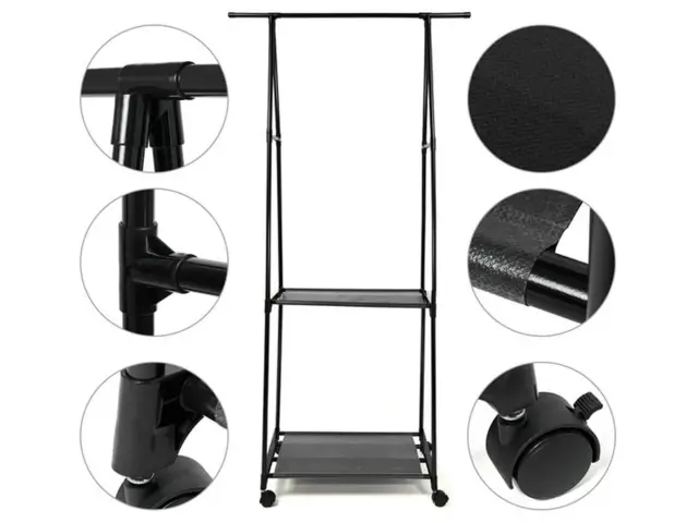 Predstavljamo vam funkcionalno stojalo za oblačila z dvema policama, ki je kot nalašč za vsak dom in ponuja ne samo dodaten prostor za shranjevanje, ampak tudi estetsko obliko, ki se bo podala v vsak interier. To vsestransko stojalo je popolna rešitev za shranjevanje oblačil, čevljev, torbic in drugih dodatkov, saj ohranja vaše stvari organizirane in lahko dostopne.