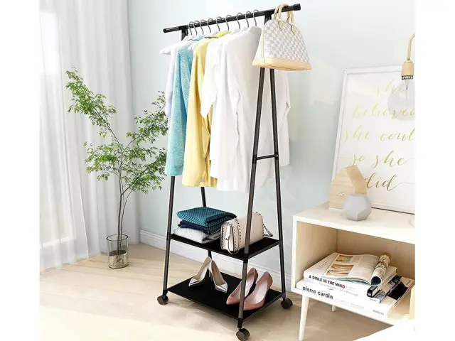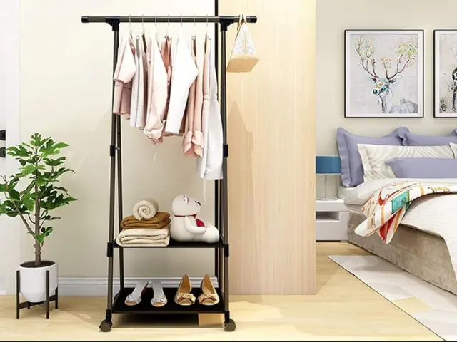 V spalnici je stojalo za oblačila odlična rešitev, ki vam pomaga ohranjati red. Nanj lahko shranite vsakodnevna oblačila, na police pa postavite čevlje, torbice ali škatle z dodatki. Tako bo vse dobilo svoje mesto, vi pa boste pridobili več prostora v garderobi.