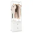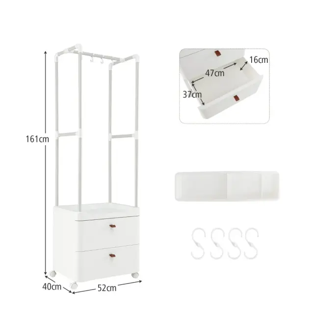 Veliko prostora za shranjevanje: ta obešalnik ima vodilo za oblačila, sredinsko polico in 2 izvlečna predala, tako da lahko zlahka dosežete in shranite oblačila. Štiri odstranljive kljuke in delilnik omogočajo shranjevanje manjših predmetov, kot so torbe ali nogavice.