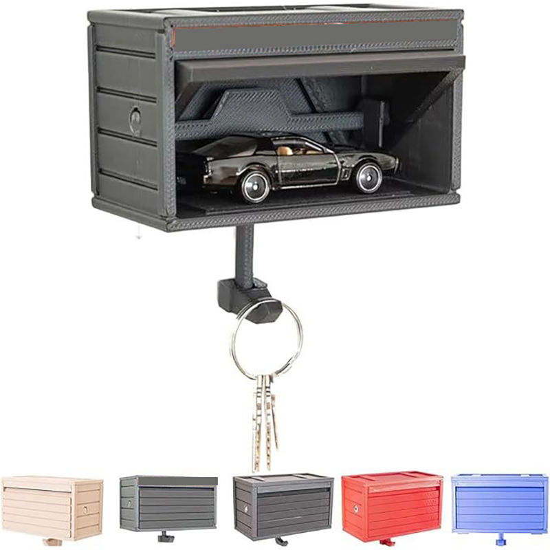 Edinstvena odpiralna vrata: Ta obesek za ključe ima kreativno oblikovana odpiralna vrata, ki posnemajo pravo garažo. Ta edinstvena funkcija ne samo da doda pridih muhavosti, ampak jo tudi naredi izstopajoč dodatek. Odpiralna vrata razkrijejo predal za ključe, ki omogoča enostaven dostop do vaših ključev, hkrati pa jih varno shranjuje. Je začetnik pogovora in praktična rešitev v enem.