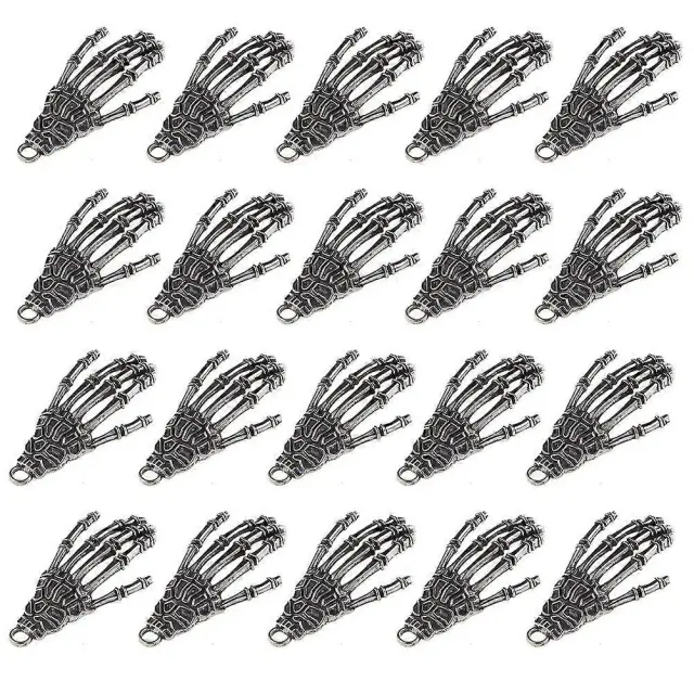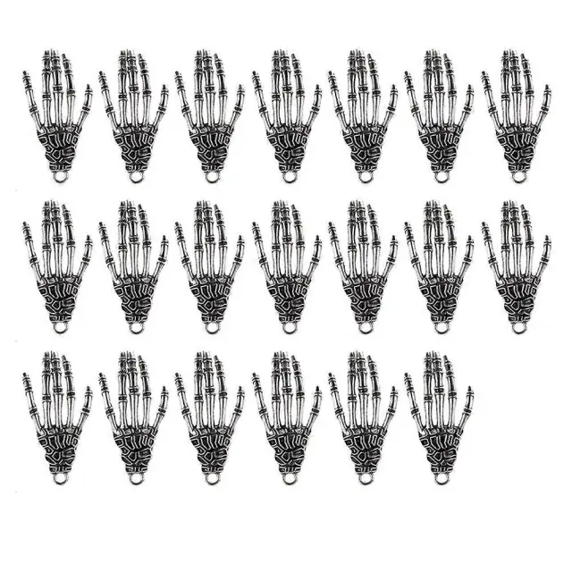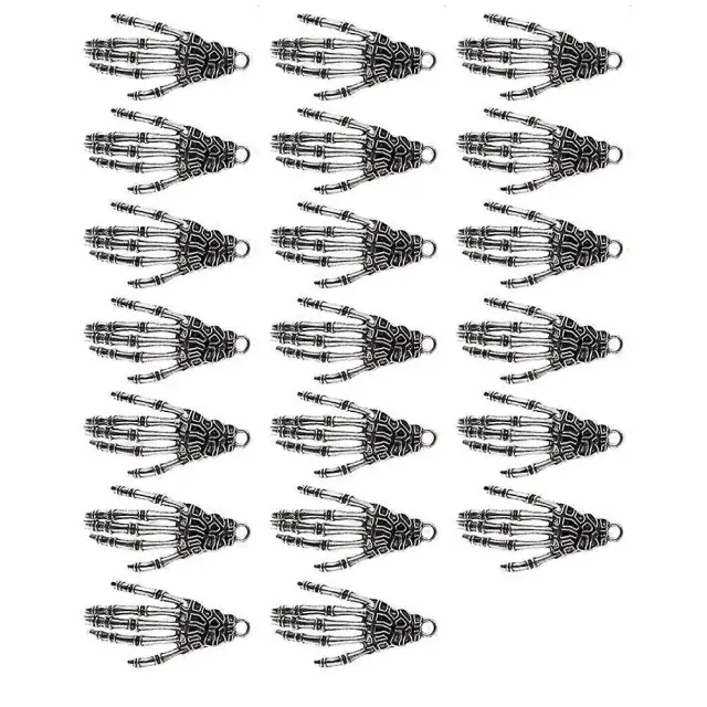 Obesek za noč čarovnic, okostnjak, ročno viseči okras, potrebščine za zabave, srebro 4,3 x 2,1 x 0,5 cm, zlitina, 20 kosov