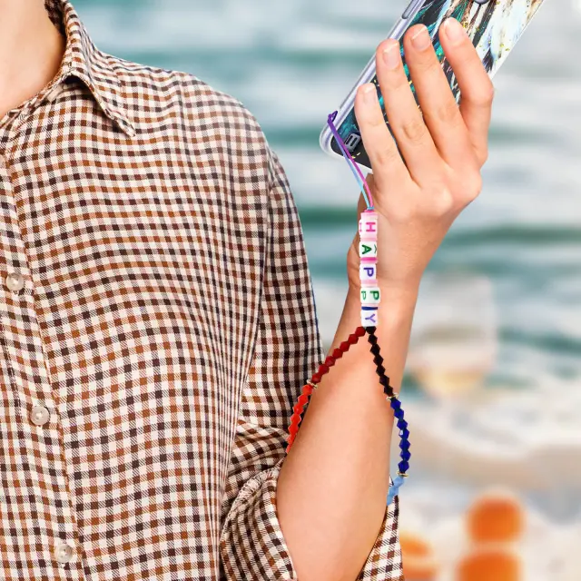 Pašček za telefon, ki združuje stil in praktičnost. Popoln za vsakodnevna potovanja, saj vam omogoča, da imate telefon pri sebi. Pritrdi se na zapestje kot trak za varno shranjevanje vašega pametnega telefona. Veseli večbarvni biseri, ki vašemu telefonu dajo oseben pridih.