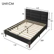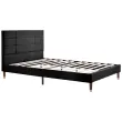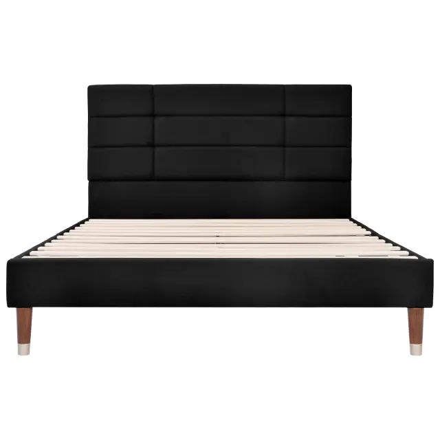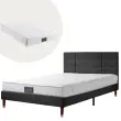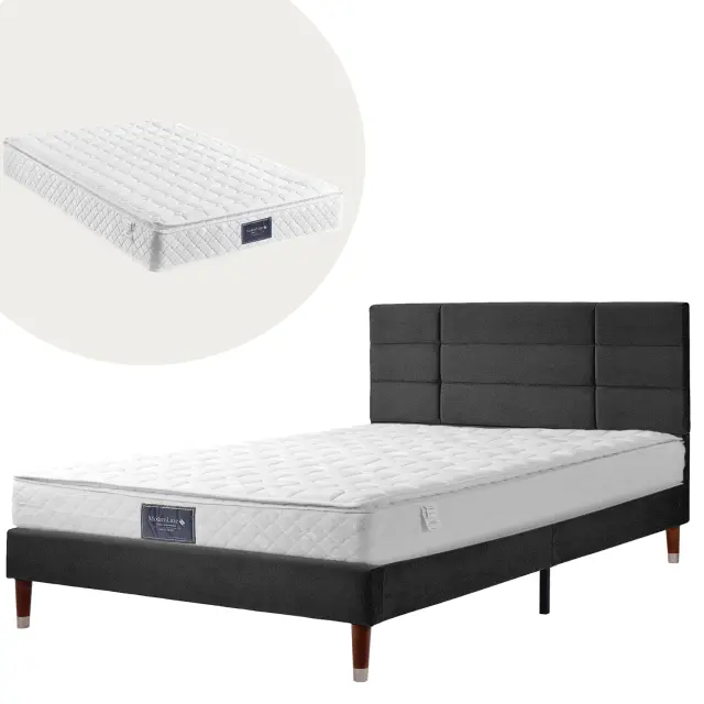 Oblazinjen okvir za zakonsko posteljo (140x200 cm) z vzglavjem in vzmetnico z žepkastimi vzmetmi - črno laneno perilo