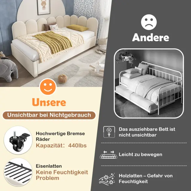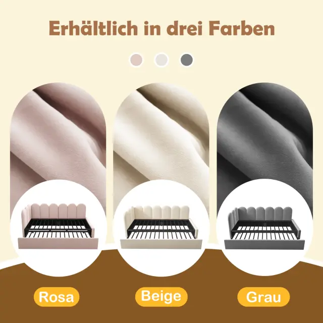 Oblazinjena dnevna postelja 90x200cm, dnevna postelja z izvlečnim ležiščem 90x190cm, otroška postelja, žamet, bež