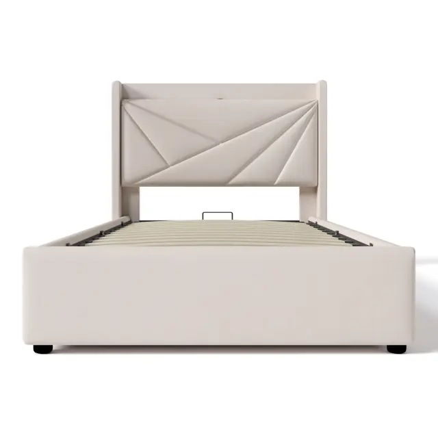 Polnjenje naprav v postelji! Priložena je shramba in držalo za vzmetnico. 96 x 208 x 107 cm. Največja teža 150 kg.
