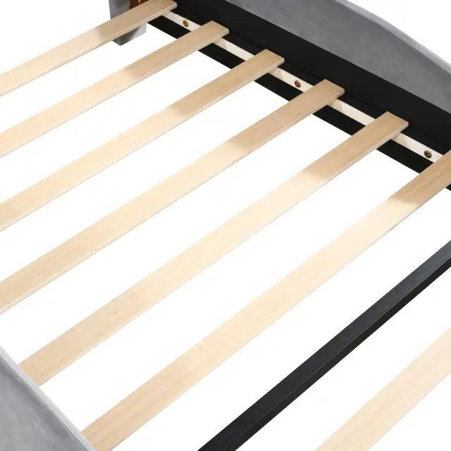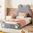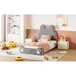 Oblazinjena otroška postelja, 90x200 cm, oblika medvedka, koži prijazen siv velur.