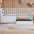 Oblazinjena otroška postelja 90x200 cm z nočno lučko, USB vhodom, predali za shranjevanje, bela