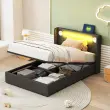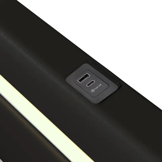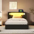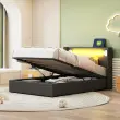 Oblazinjena otroška postelja 90x200 z LED, Bluetooth, USB, PU usnje, škatla za shranjevanje