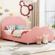 Oblazinjena otroška postelja 90x200cm, roza žamet, vzglavje/vznožje v obliki oblaka, visoka ograja.