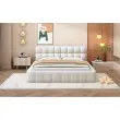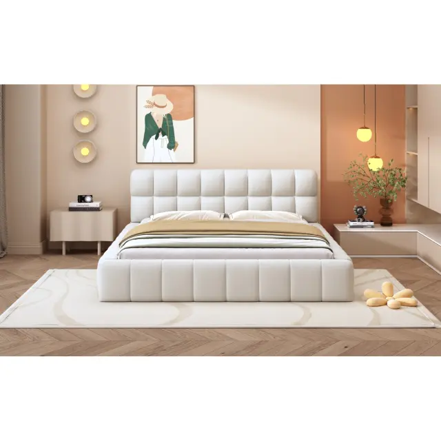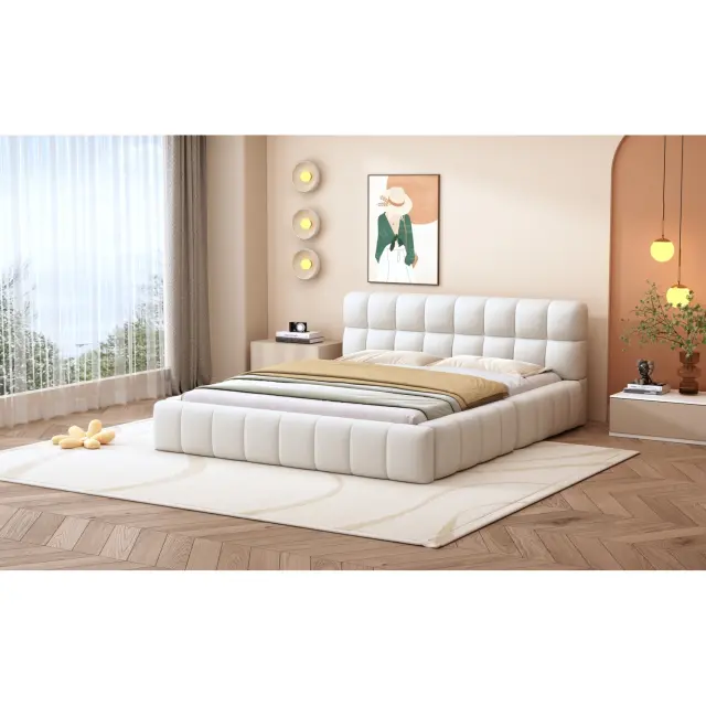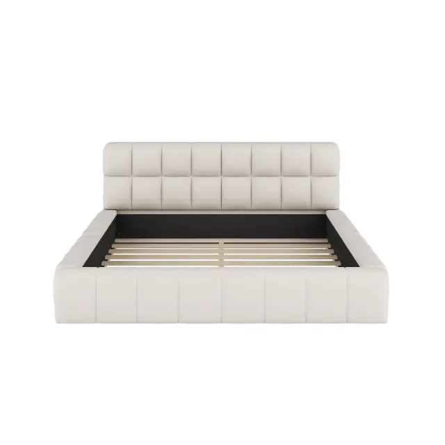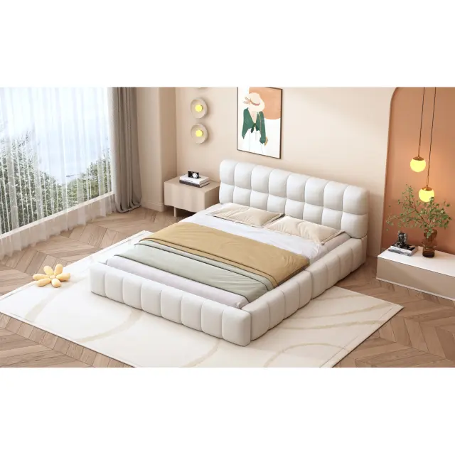 Oblazinjena postelja 140x200 cm, otroška/zakonska postelja z mehkim naslonjalom, bež lan