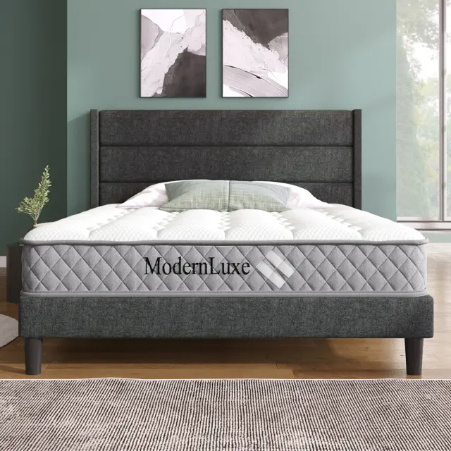 Sivo/zelen posteljni okvir 90x200cm ali 140x200cm s 7-consko vzmetnico. Enostavna montaža.