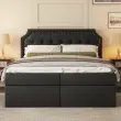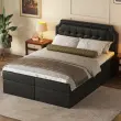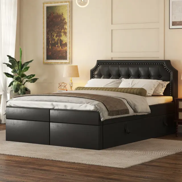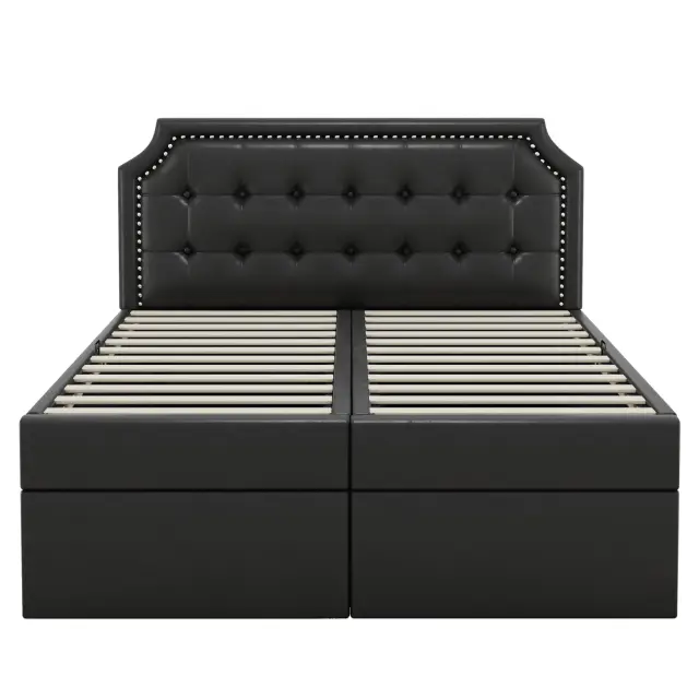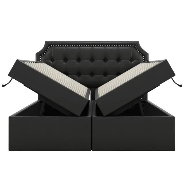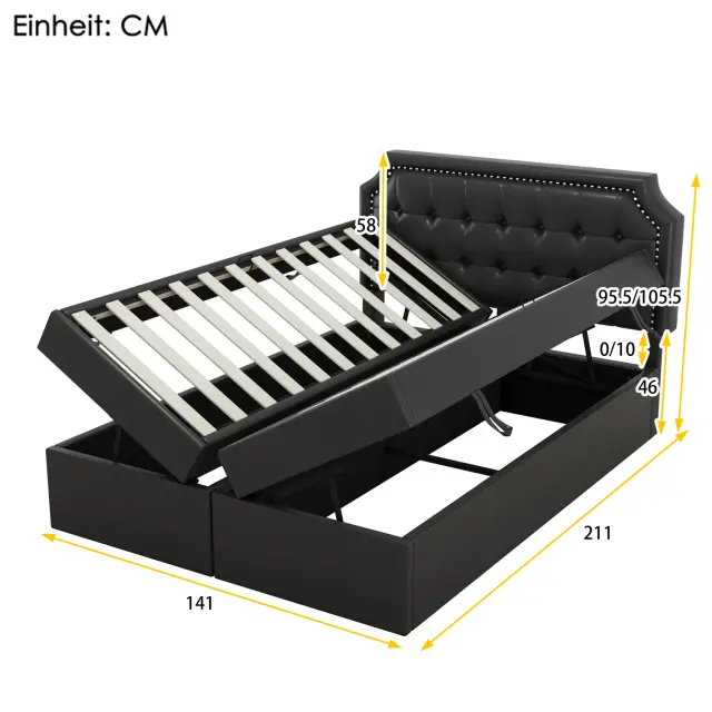 Oblazinjena postelja 140x200cm, zakonska postelja s kovinskim okvirjem in letvenim podnožjem, črna