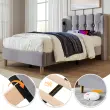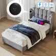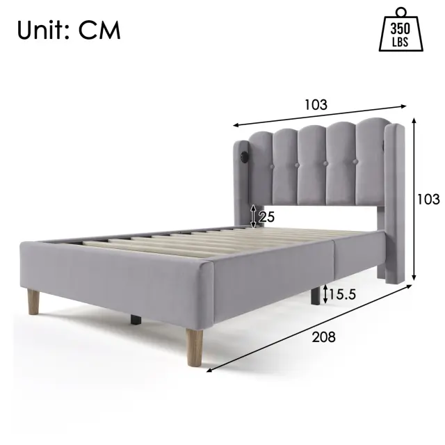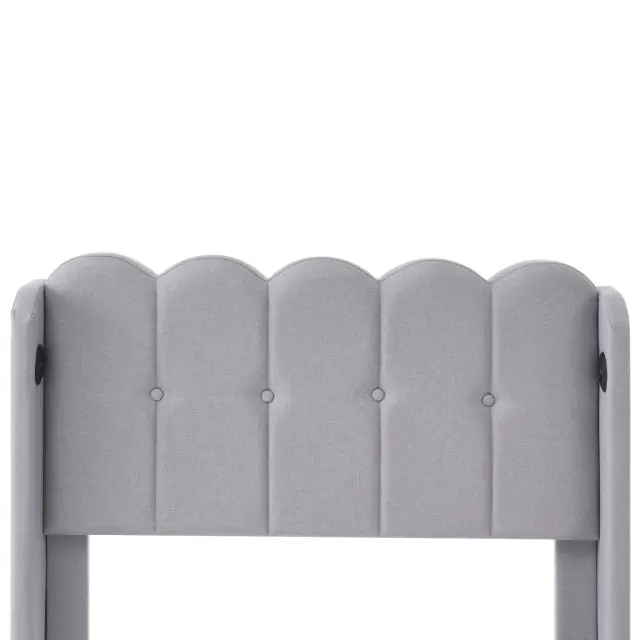 Oblazinjena postelja 90x200 cm z USB-C, letveni okvir, siva
