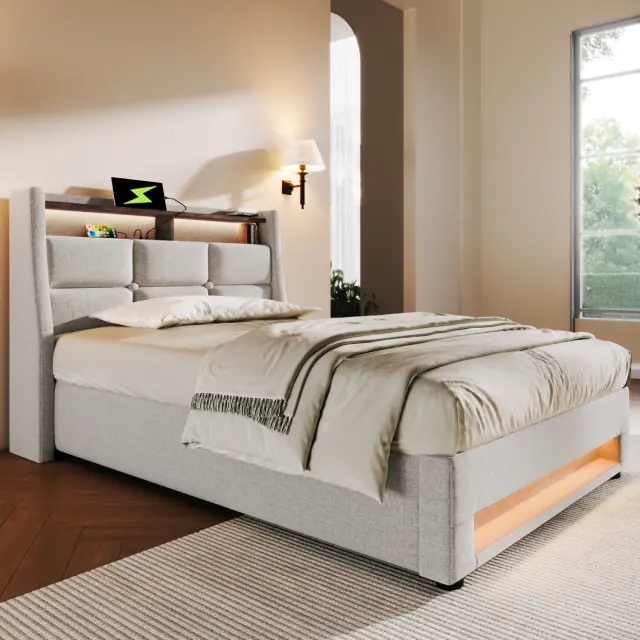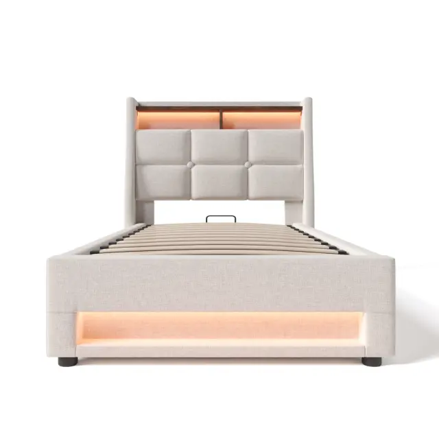 Oblazinjena postelja 90x200 cm z USB, LED, letvenim okvirjem in vzmetnico
