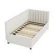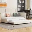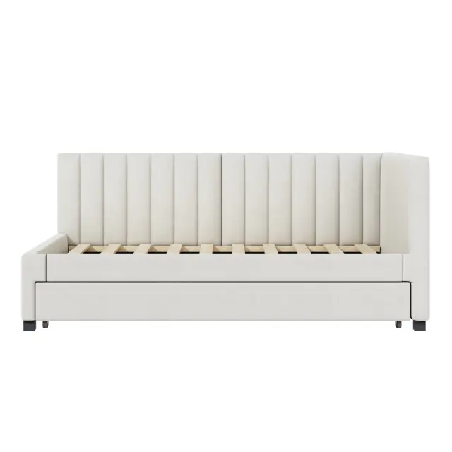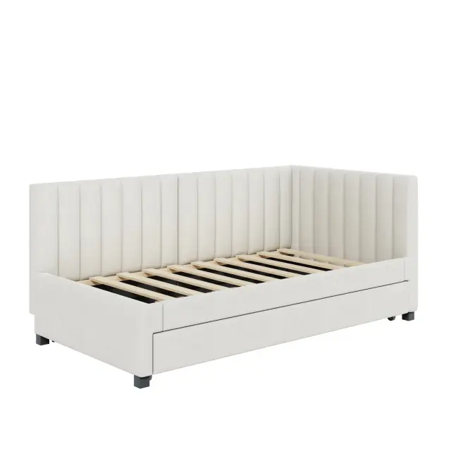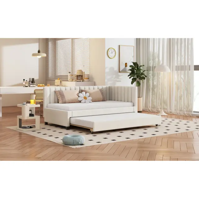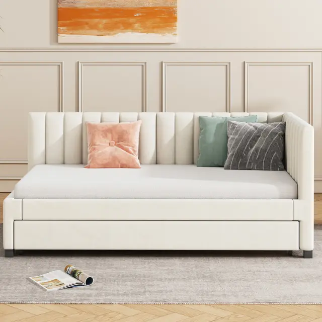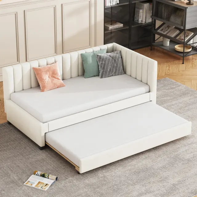 Oblazinjena postelja 90x200, Raztegljiv kavč z ležiščem, Večnamenska postelja z letvicami, Otroške/Gostovske postelje, Žamet bež.