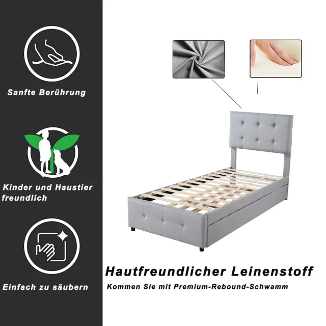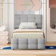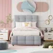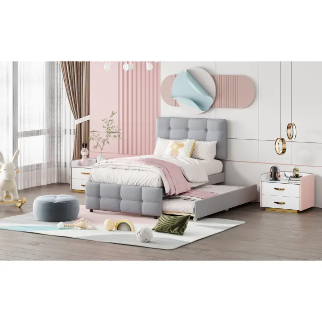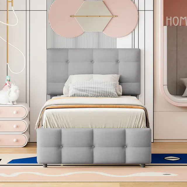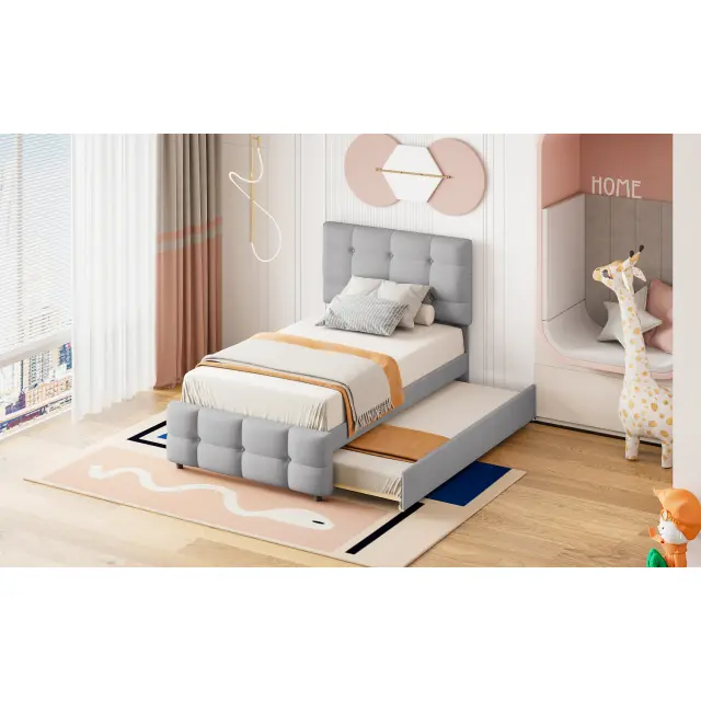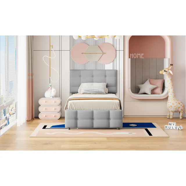 Oblazinjena postelja 90x200cm, raztegljiva otroška postelja z nastavljivim vzglavjem (siva)