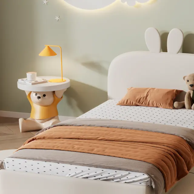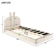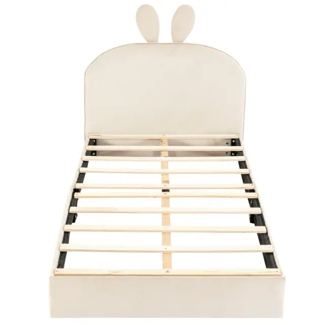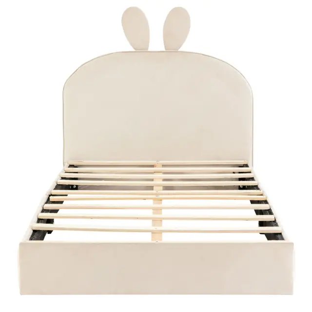 Oblazinjena postelja z vzglavjem zajca, otroška postelja, žamet, bež, 90x200cm