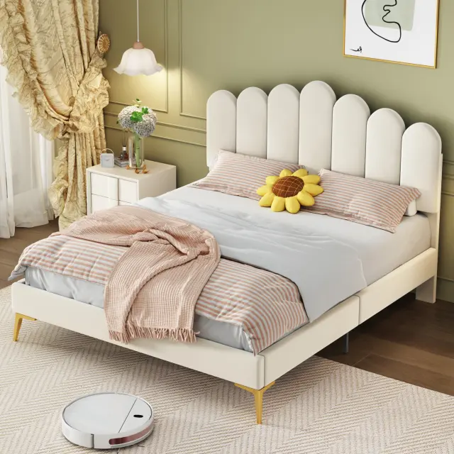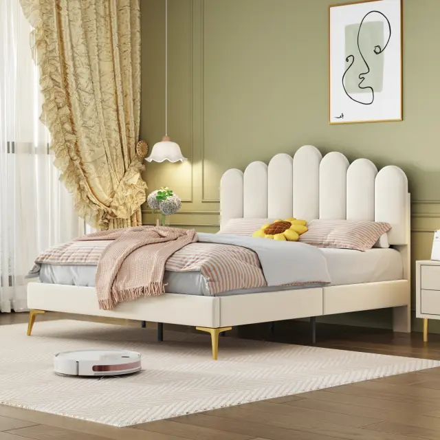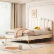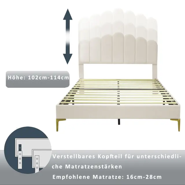 Oblazinjena zakonska postelja 140x200cm z vzglavjem, letveni okvir, žametno blago, bež