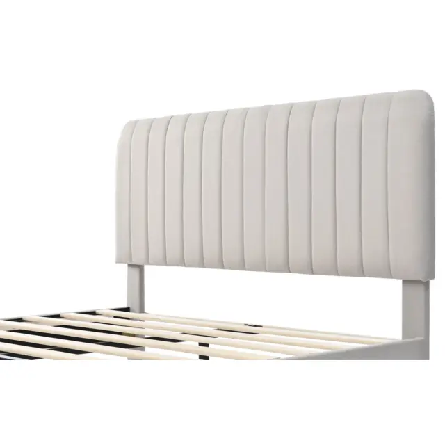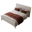 Oblazinjena zakonska postelja 180x200cm, sivo-bež lan, nastavljivo vzglavje, letveni okvir.