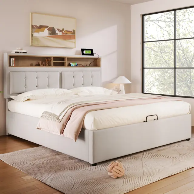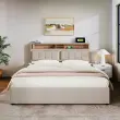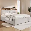 Oblazinjena zakonska postelja z vzglavjem za polnjenje prek USB-C, posteljni okvir s shrambo za posteljnino 140x200 (brez vzmetnice)