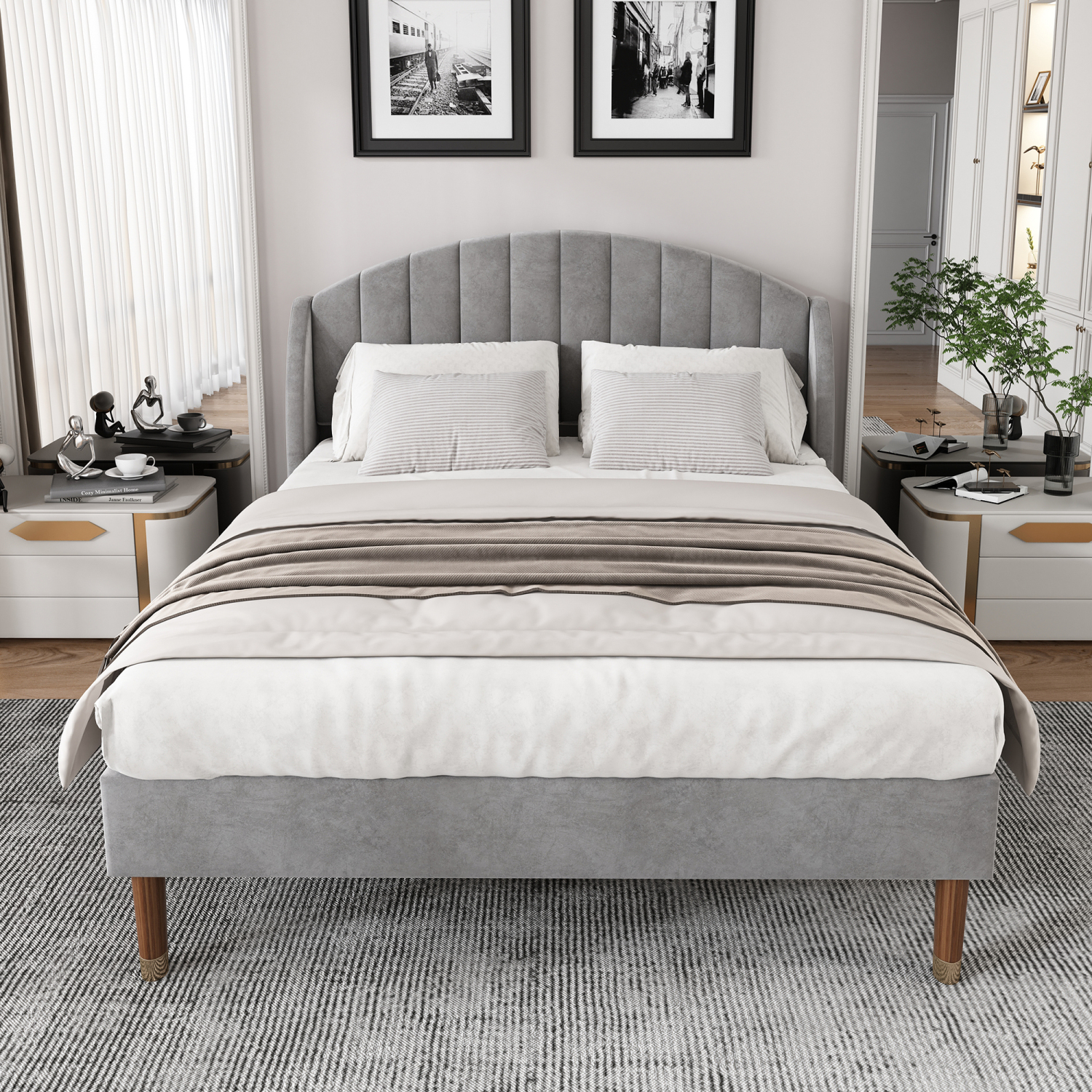 Oblazinjena žametna postelja 140x200 z vzglavjem in letvenim okvirjem - siva
