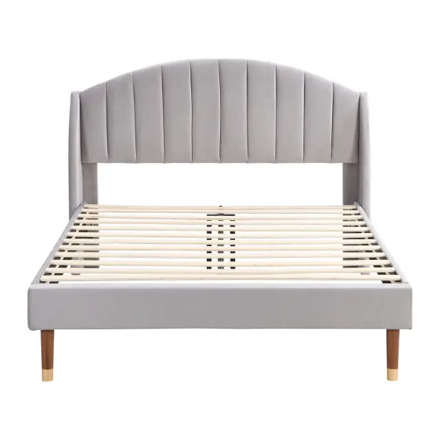 Oblazinjena žametna postelja 140x200 z vzglavjem in letvenim okvirjem - siva