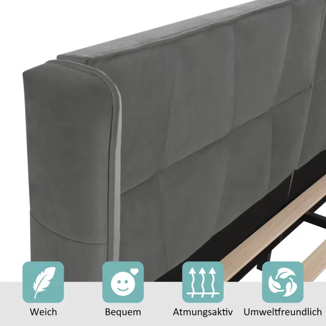 Oblazinjena žametna postelja 180x200 z vzglavjem in letvenim okvirjem - siva