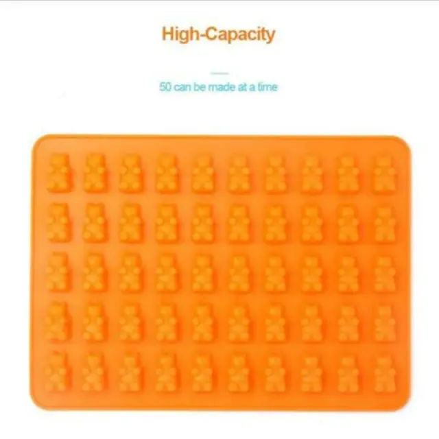 Vsestranski silikonski kalup : Odlijte svoje gumijaste medvedke z modelom za bonbone za 50 medvedkov! Model se lahko uporablja tudi za npr. pecivo in čokolado. Ali pa uporabite kot pladenj za ledene kocke!