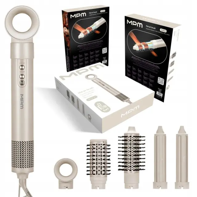 - MPM MLW-27 5-v-1 sušilnik in oblikovalnik las, ki omogoča hitro, enostavno in profesionalno oblikovanje pričeske kar doma.
