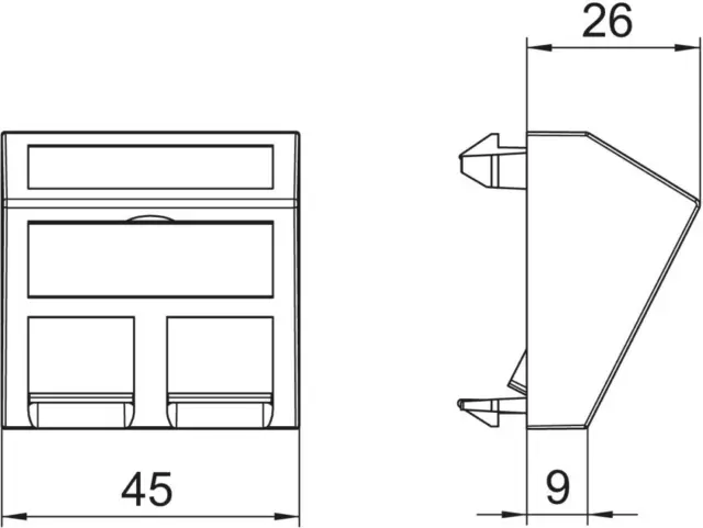 Globina naprave: 26 mmOBO Bettermann podpora za podatkovno tehnologijo DTS-2C RW1: Dodatne informacijePodpora za podatkovno tehnologijo s poševnim izhodom in zaklepnim drsnikom za namestitev dveh priključnih modulov podatkovne tehnologije z vtičnico RJ45. Pritrditev z zaskočnico je primerna za vodoravno in navpično namestitev v sistemsko okolje. Tip C ima montažno odprtino 19,30 X 14,80 mm in je zasnovan za neposredno pritrditev modulov za podatkovne priključke v montažno odprtino. EAN: 4012195697251