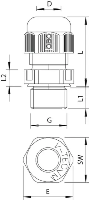 Območje: OBO Bettermann Vertr Verschraubung Vollmetrisch V-TEC VM63 LGR, enota pakiranja: 1 kos, EAN: 4012195533955
