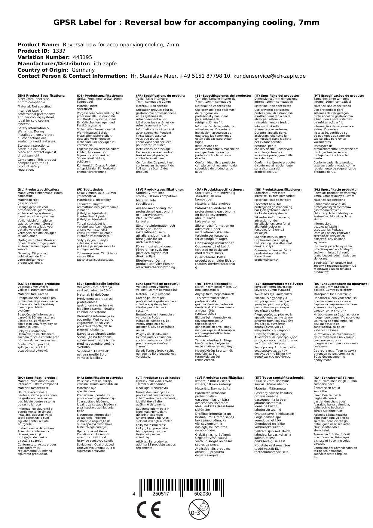 Kompatibilnost z vodo in notranji premer 10 mm ga naredita posebej primeren za hladne kanalnih naprav in sisteme za hlajenje sodov. Skrbna razvoj tega izdelka zagotavlja ne le gladko delovanje, ampak tudi dolgo življenjsko dobo zaradi njegove nerjavne in trajne konstrukcije.
