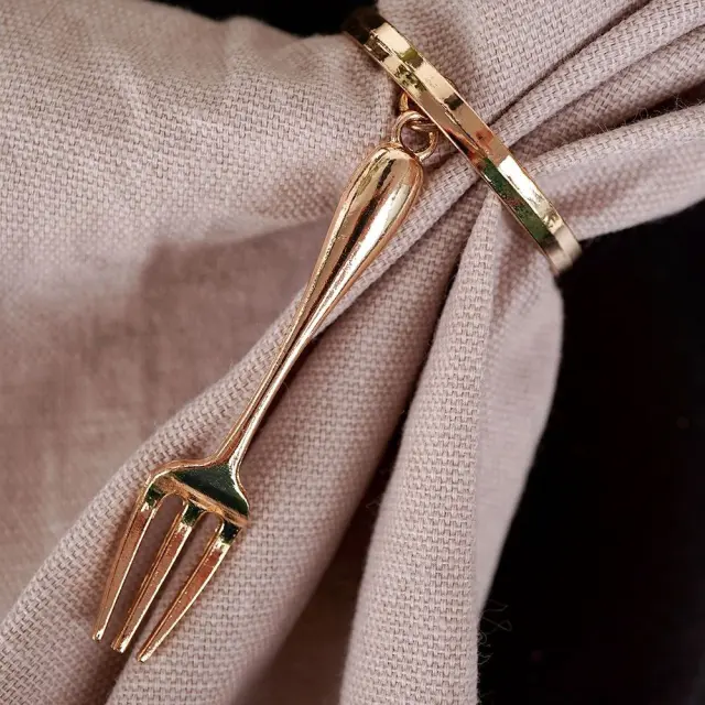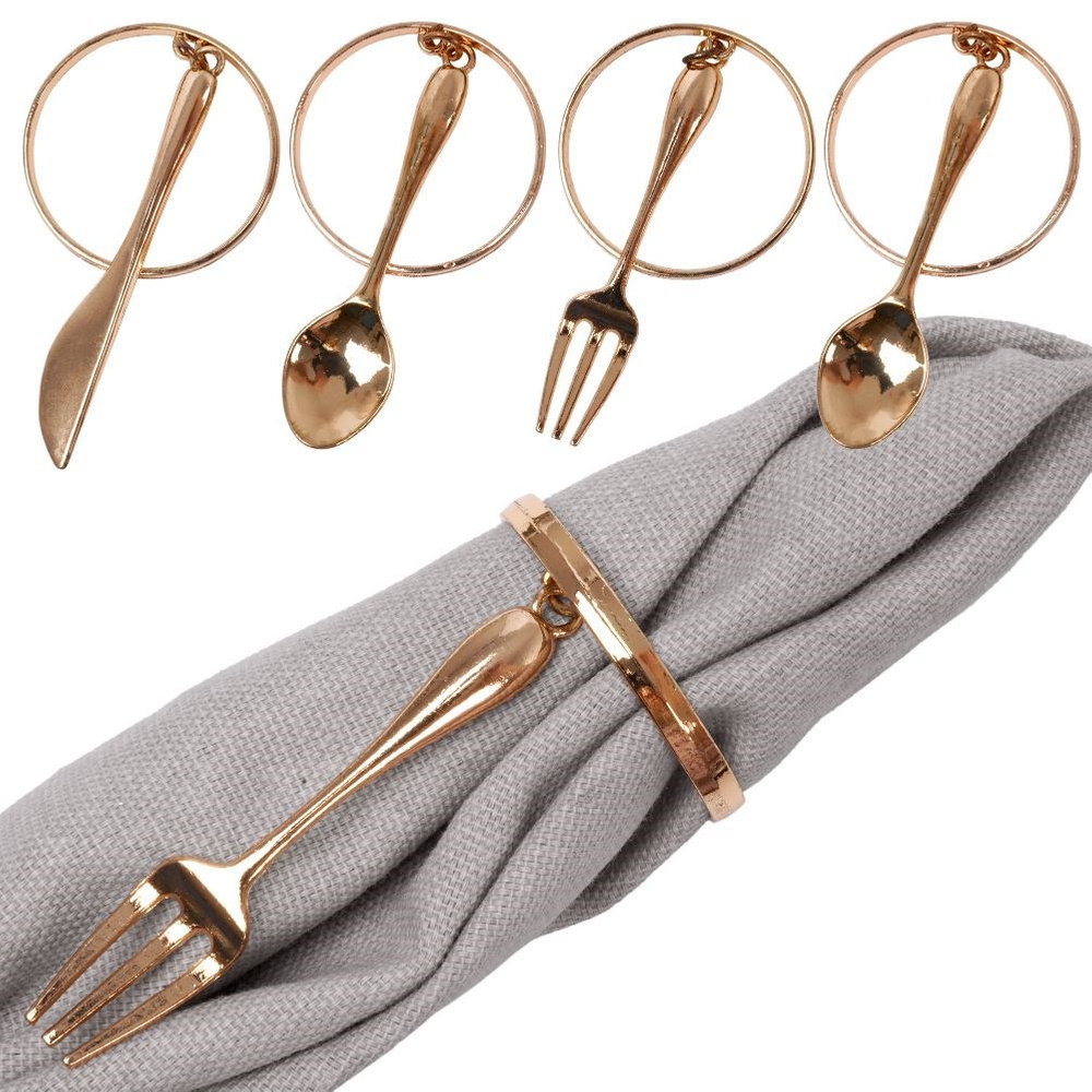 Obroči za prtičke, kovinski, zlati, jedilni pribor 4 cm, 4 kosi.