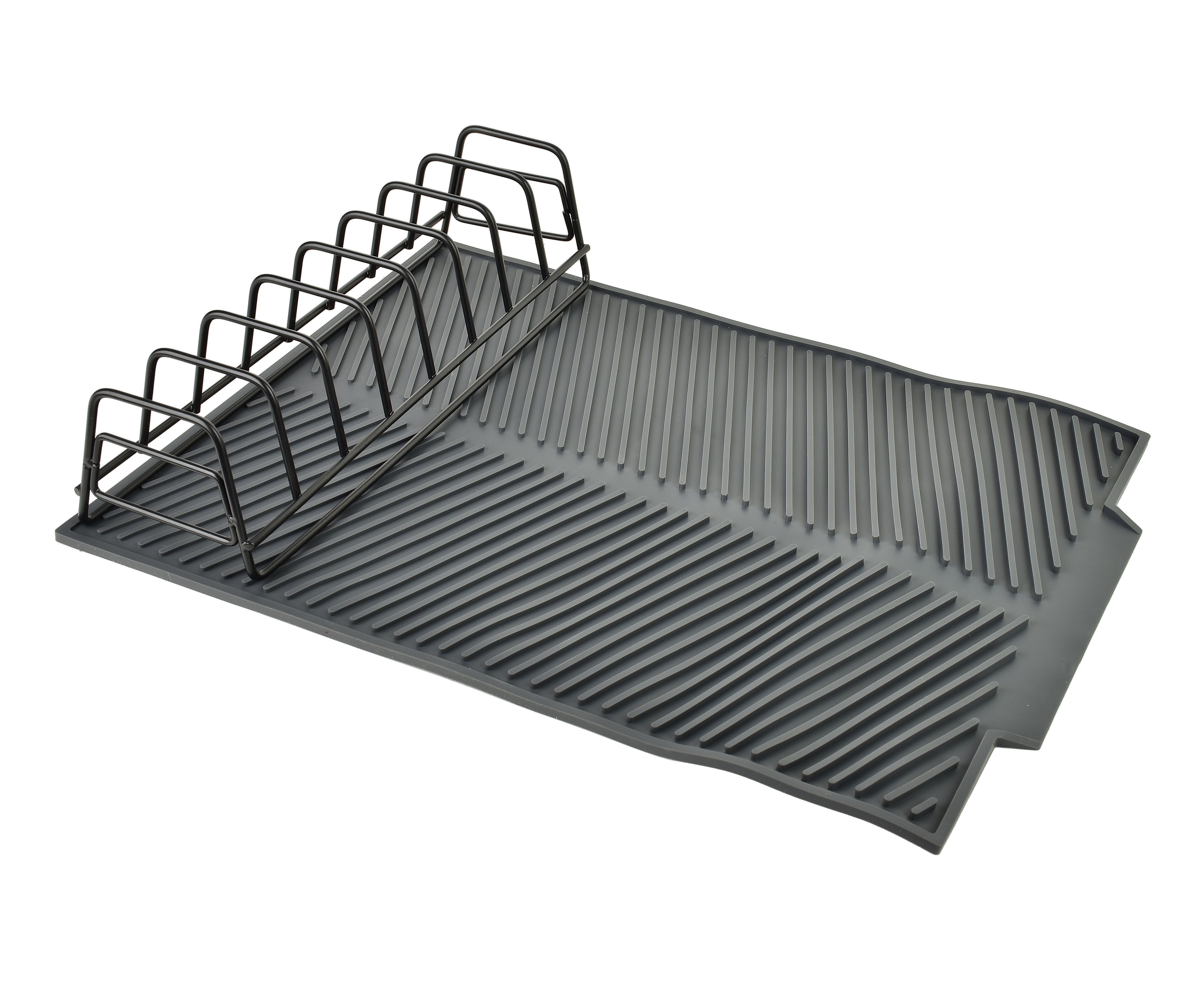 Kovinski stelaž zagotavlja stabilnost in optimalno kroženje zraka, silikonska podloga pa ščiti občutljive površine pred praskami ter preprečuje zdrs posode. Moderni minimalistični dizajn v črni barvi se lepo poda k industrijskim in sodobnim kuhinjam, kar omogoča estetsko usklajeno opremo. Izdelek združuje uporabnost in eleganco, je enostaven za čiščenje in vzdrževanje ter pripomore k urejenemu in praktičnemu delovnemu območju v kuhinji.