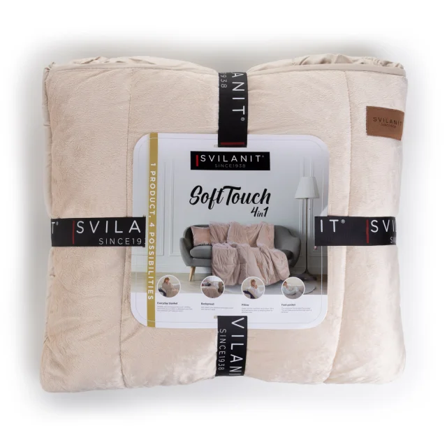 Večnamenska dekorativna odeja SoftTouch 4v1 vas bo navdušila s svojo funkcionalnostjo saj jo lahko uporabljate kot odejo vzglavnik pregrinjalo ali kot praktičen žep za noge. Prav vam bo prišla doma na kavču kot odeja za v avto nepogrešljiva bo tako na pikniku kot kampiranju. Izdelana je iz kakovostnih in mehkih mikrovlaken ki so izredno tanka in zato prijazna do vaše kože. Mehka in gladka stran nudita različne možnosti uporabe. Mehka stran je primerna za razvajanje gladka pa s prešitjem preprečuje drsenje na različnih podlagah. Odeja je pralna na 40 °C.