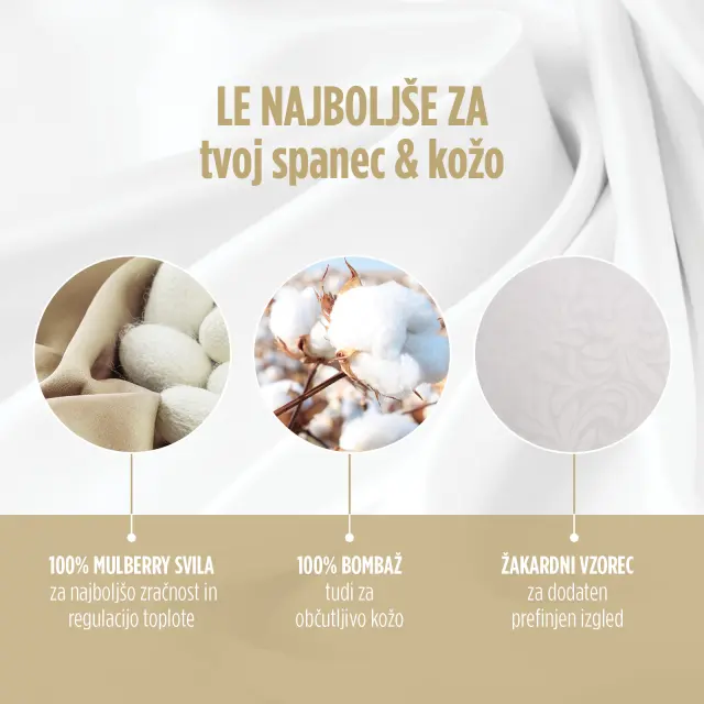 Celoletna odeja Victoria's Silk te razvaja z bogatim volumnom, 100 % naravnimi materiali in zračnostjo v vseh letnih časih. Je najboljša univerzalna izbira za vse leto, saj je najboljša 100 % mulberry svila naravni termoregulator in se prilagaja glede na sezonske temperature. V hladnejših mesecih te greje, v vročih mesecih pa tvoje telo prijetno hladi.