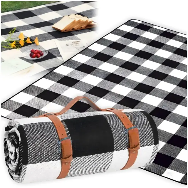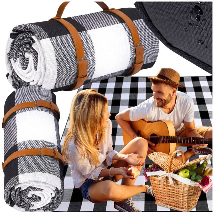 Odeja za piknik na plaži z izolacijo, vodoodporna, 200x200 cm, XXL, karo