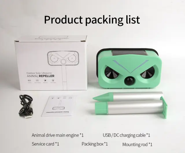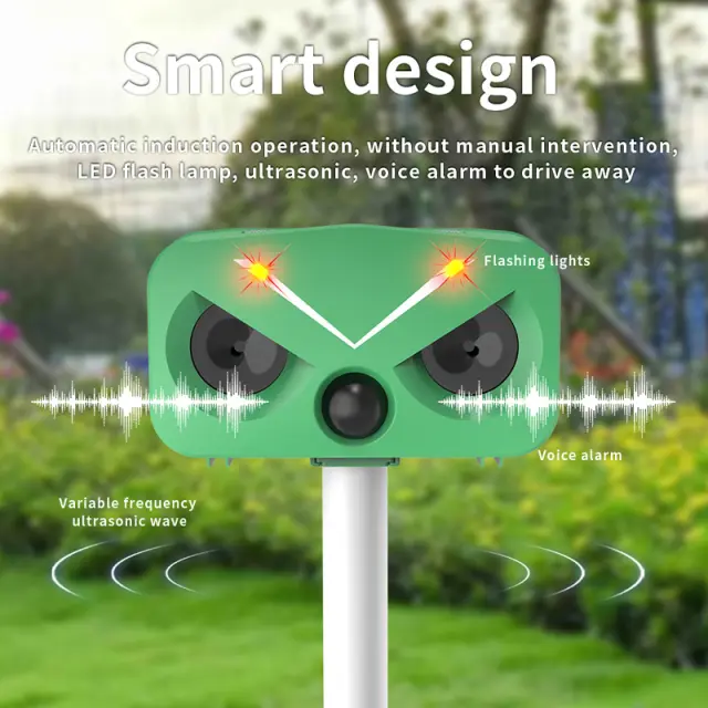 Ultrazvočni odganjalec živali: ta naprava, opremljena z ultrazvočno tehnologijo, oddaja visokofrekvenčne zvočne valove (300–450 kHz), da odvrne glodavce in druge nezaželene živali od vašega zunanjega prostora. Učinkovito in humano zaščitite svoje premoženje pred škodljivci.