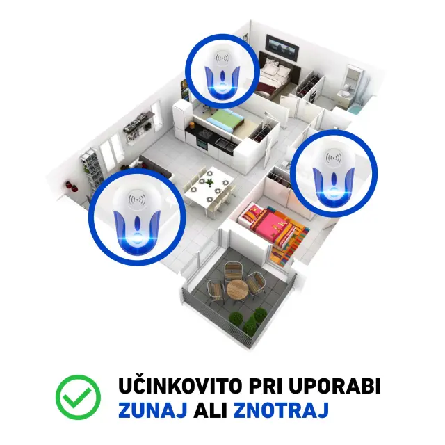 Ultrazvočni odganjalec komarjev in škodljivcev je zasnovana za odvračanje širokega spektra škodljivcev, kot so komarji, muhe, glodalci in ščurki, brez uporabe kemikalij ali pasti. Je kompakten in priključen zvočni odganjalec, primerna za uporabo v različnih notranjih prostorih za vzdrževanje okolja brez škodljivcev. Odganjalec komarjev deluje z odajanjem visokofrekvenčnih zvočnih valov, ki so neznosni za komarje in ostale škodlivce, a neslišni in neškodljivi za ljudi in hišne ljubljenčke. Elektronski odganjalec je učinkovit proti različnim vrstam škodljivcev, kar poudarja njegovo vsestranskost in priročnost uporabe ultrazvočne tehnologije za nadzor le teh. Oblikovanje zagotavlja enostavno uporabo, z lastnostmi kot so nizka poraba energije, pokritost precejšnjega območja in preprosta namestitev z vtičem v električno vtičnico. Ta okolju prijazen ultrazvočni repelent z tradicionalnim metodam nadzora škodljivcev je privlačna možnost za gospodinjstva, ki želijo izogniti uporabi strupenih snovi.