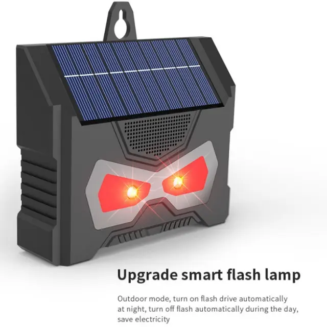 Repelent na sončno energijo: Ta odganjalec živali za delovanje uporablja sončno energijo, zaradi česar je energetsko učinkovit in stroškovno učinkovit. Polni se ves dan, kar zagotavlja neprekinjeno zatiranje škodljivcev brez potrebe po pogostem menjavanju baterij.