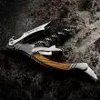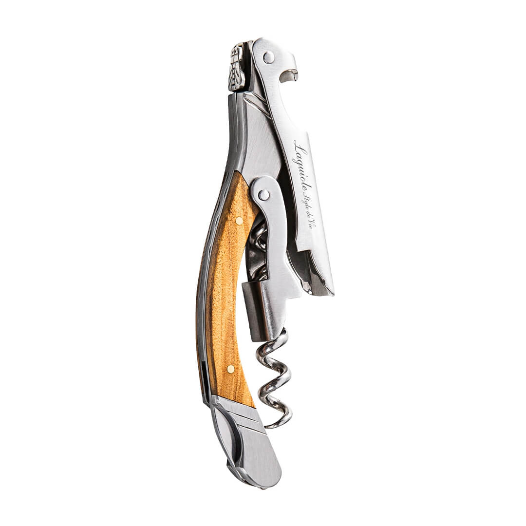 Odpirač iz linije Luxury Line v vašo kuhinjo prinaša kul in robustne, a tudi klasične in elegantne dodatke. Ta odpirač je izdelan iz kaljenega jekla in oljčnega lesa. Vsebuje dve ročici in se petkrat zavrti. Odpirač je pakiran v razkošni škatli in ima brezčasen in izviren videz. Ni primeren za pomivanje v pomivalnem stroju.